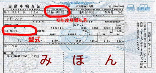 1.自動車検査証の初度登録年月と型式を確認して下さい